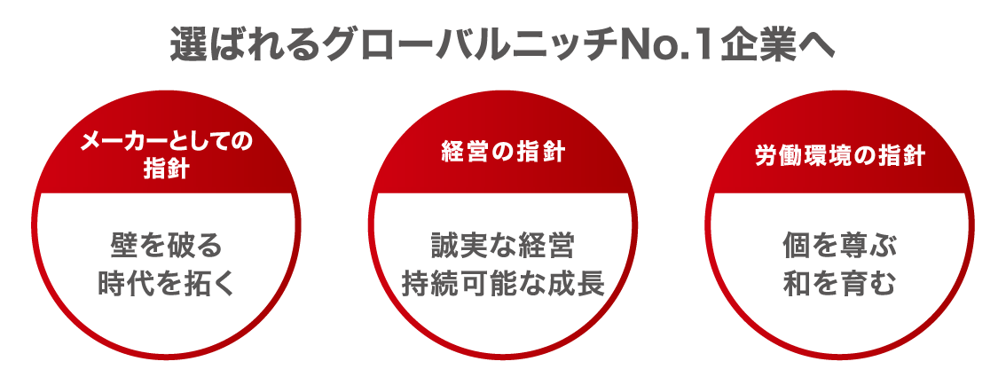 私たちは、一世紀を超える歴史の中で培った技術と経験を生かし、つねに時代が求める新しい技術・製品を提供することで先端産業を支え、人・社会・地球環境にとってより豊かで持続可能な未来の創造に貢献し続けます。